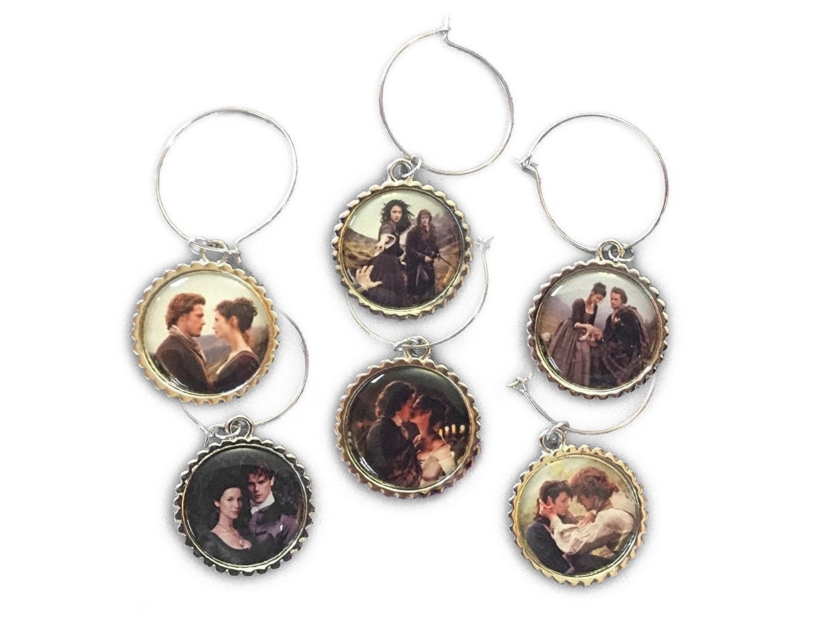 Makes an exceptional gift for weddings, anniversaries, house-warming parties or for any wine lover.Outlander Love Wine Charms is best for youToy Vault's Outlander Love Wine Charms are the perfect gift for the Outlander fan in your life. Featuring scenes of Jamie and Claire from the hit show Outlander, these charms help inspire the romantic in anyone and are perfect for your next party. Featuring an easy-to-attach holding ring, these charms are made of durable metal and feature images of Jamie and Claire from the first season of Outlander. This set can be combined with our Outlander Character Wine Charm set that features six characters from the show, Jamie, Claire, Dougal, Colum, Mrs. Fitzgibbons, and Geillis.
