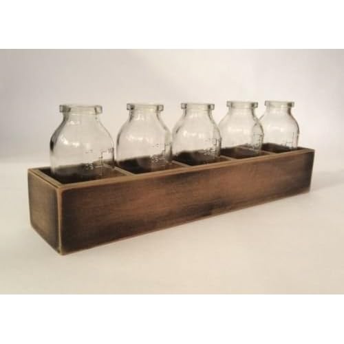 • The Five Small Glass Bottles Vintage Wooden Crate Wedding Bud Vase Party Shot Glass is a