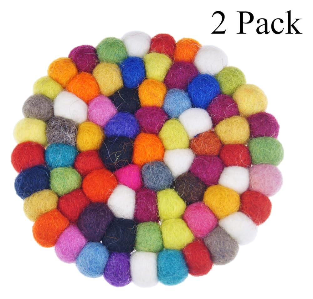 • The Nuliah® 2 Pack Nepal Tibetan Hand Woven Wool Bobbles Coasters Set, Christmas Gift, Round 4 Inches is a