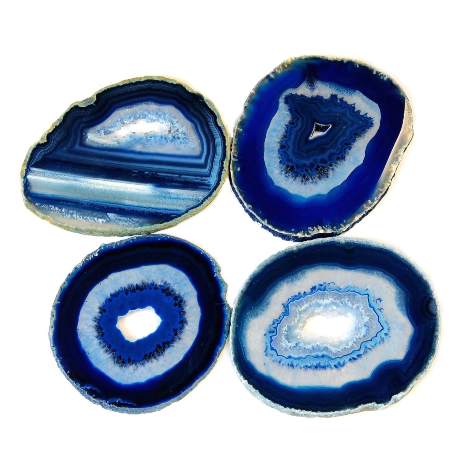 • The Airblasters Blue color 3.5-4 inch Natural Sliced Agate Coaster with Rubber Bumper Set of 4 is a