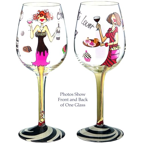• The Bottom's Up 15-Ounce Chocolate and Wine Make Everything Fine Handpainted Wine Glass is a