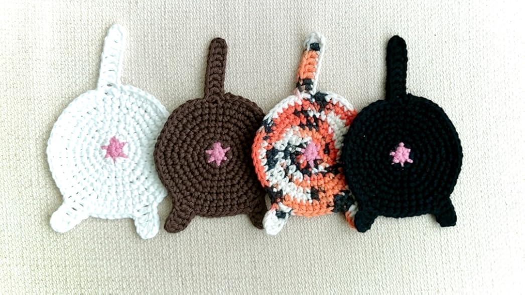 • The Handmade crochet black, white, brown and calico cat butt coasters (Set of 4) is a