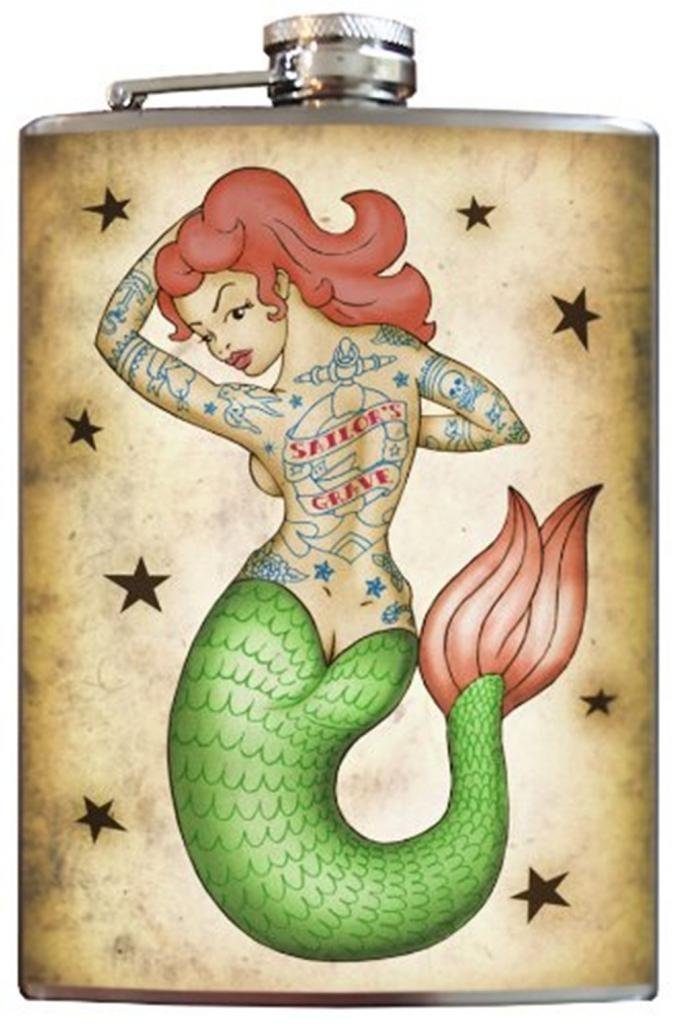 • The Trixie & Milo Tattooed Mermaid 8oz Stainless Steel Flask is a