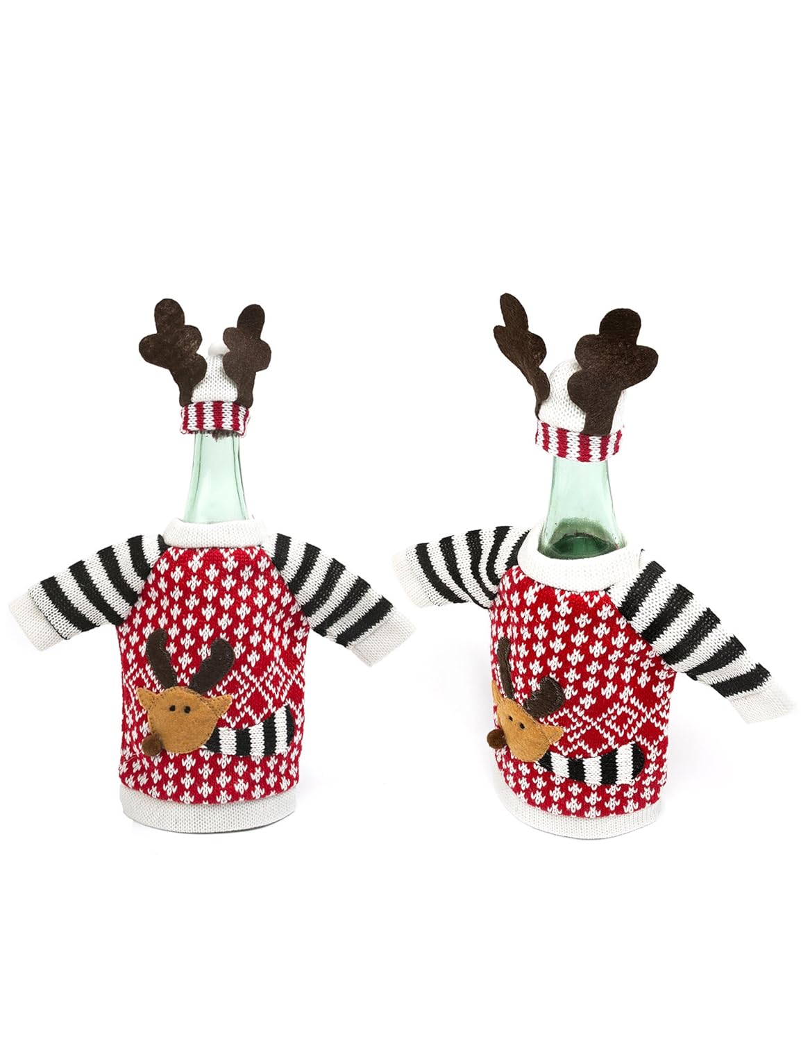 • The DomeXmas 2 Pcs Wine Bottle Cover with beanies for Christmas, Cute Deer is a