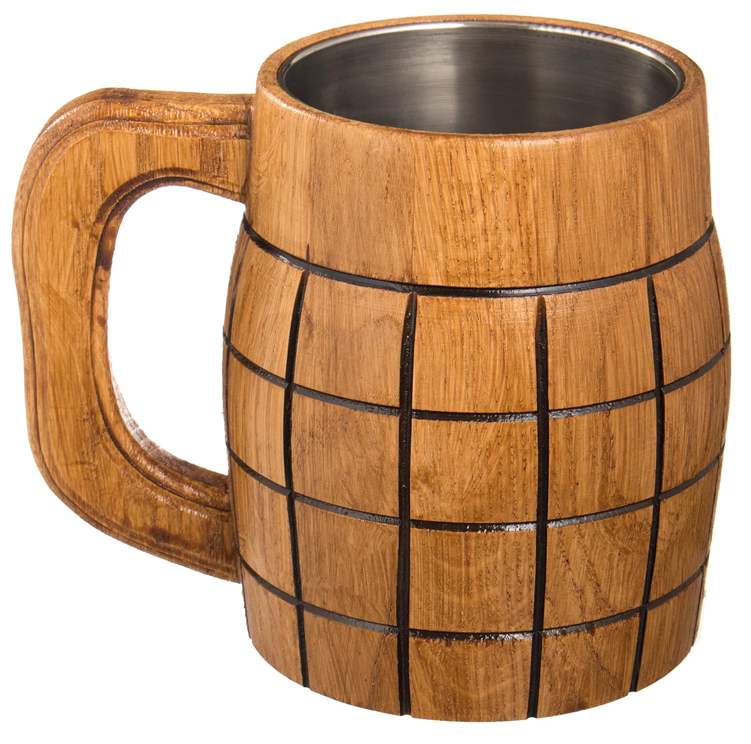 • The Handmade Beer Mug 0.6L 20oz Oak Wood Stainless Steel Cup Natural Eco-Friendly Gift Grenade Beige is a