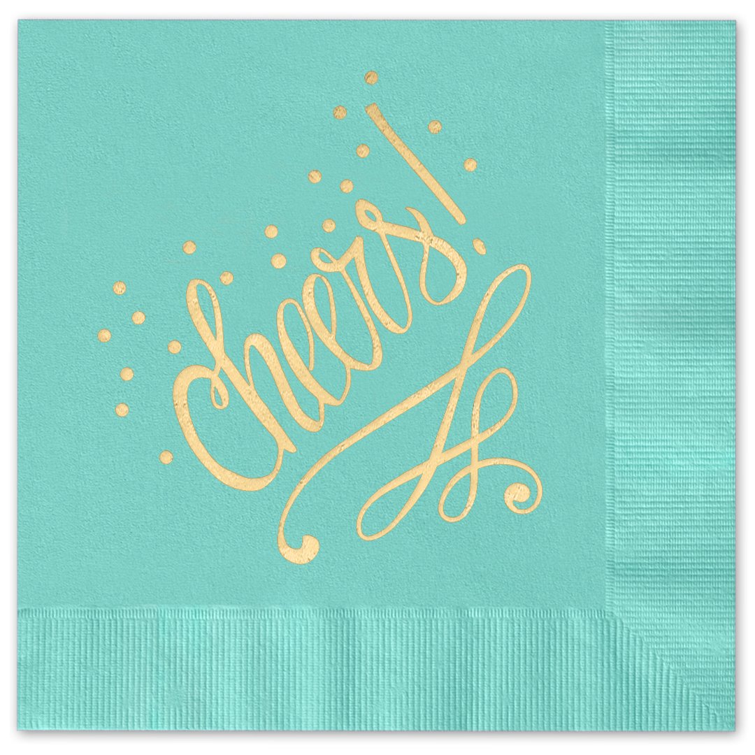 • The Cheers to You! Beverage Cocktail Napkins - Set of 25 aqua paper napkins with gold foil is a