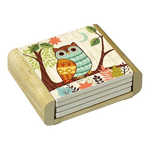 • The CounterArt Absorbent Coasters in Wooden Holder, Woodland Friends Owl, Set of 4 is a