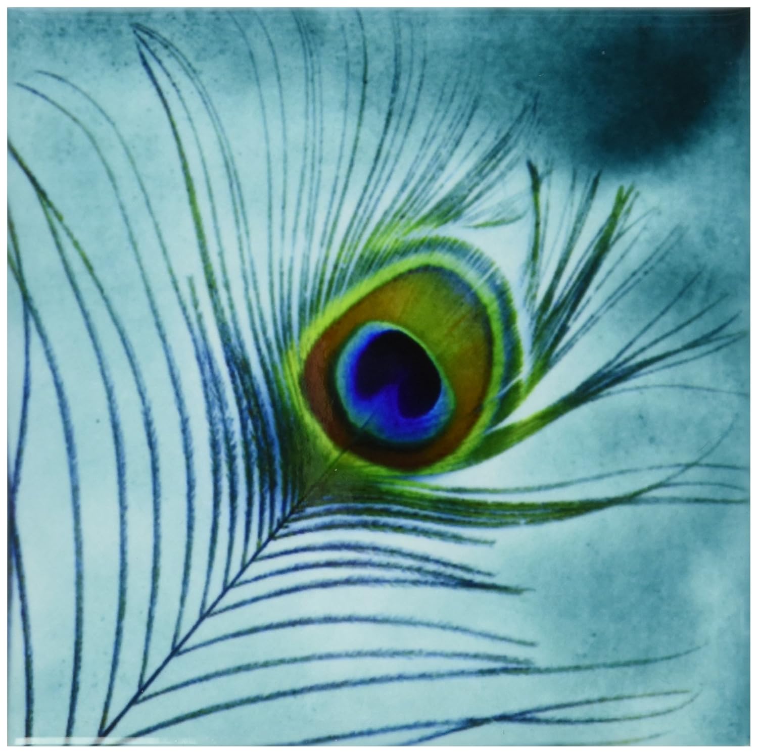 • The 3dRose cst_211236_3 Peacock Feather on Turquoise Background Ceramic Tile Coaster (Set of 4) is a