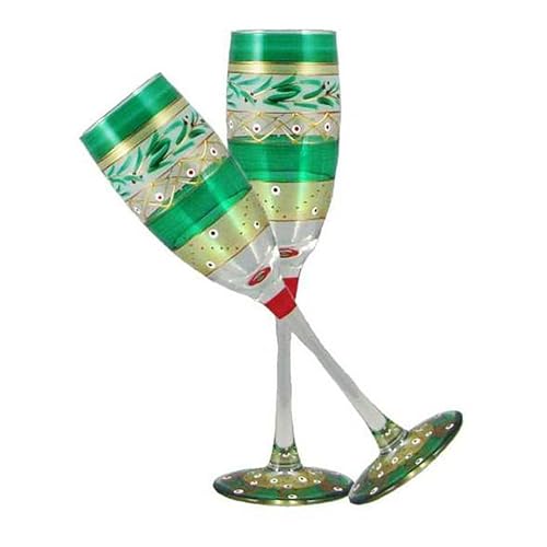 • The Golden Hill Studio Champagne Flute Glasses Hand Painted in the USA by American Artists-Set of 2-Mosaic Christmas Garland Collection is a