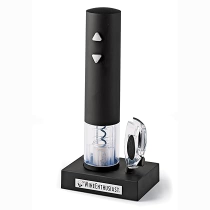 Vinturi’s patented design draws in and mixes the proper amount of air for the right amount of time; allowing your wine to breathe instantly. When wine is poured in the Vinturi, its internal design creates an increase in the wine’s velocity and a decrease in its pressure.the Wine Enthusiast Electric Blue Push-Button Corkscrew, Black This pressure difference draws in air, which is mixed with wine, for perfect aeration. The Vinturi Red Wine Aerator delivers a better bouquet, enhanced flavors and a smoother finishVinturi was the first venturi-driven, handheld wine aerator. Vinturi’s patented technology is designed to infuse the perfect amount of oxygen to interact with wine as it is poured through the chamber. We tested different contact times and geometries to arrive at mixing the proper amount of air for the right amount of time. As the wine increases velocity, oxygen is drawn in through air intake channels.Wine Enthusiast Electric Blue Push-Button Corkscrew, Black is best for youColor:Black Illuminating---uncorking made easy and fun! A wine opener as entertaining to watch as it is easy to use! See the blue light shine through the action window as the cork is smoothly extracted from your bottle and released---with a simple press of a button. The blue light also shines bright on its recharging stand, doubling its duty as a stylish nightlight. 8-hour charge. Includes foil cutter and instructions. Size: Corkscrew - 10'H x 2-1/8'Dia. ; Base - 5'L x 3-1/2'W Not recommended for synthetic corks.