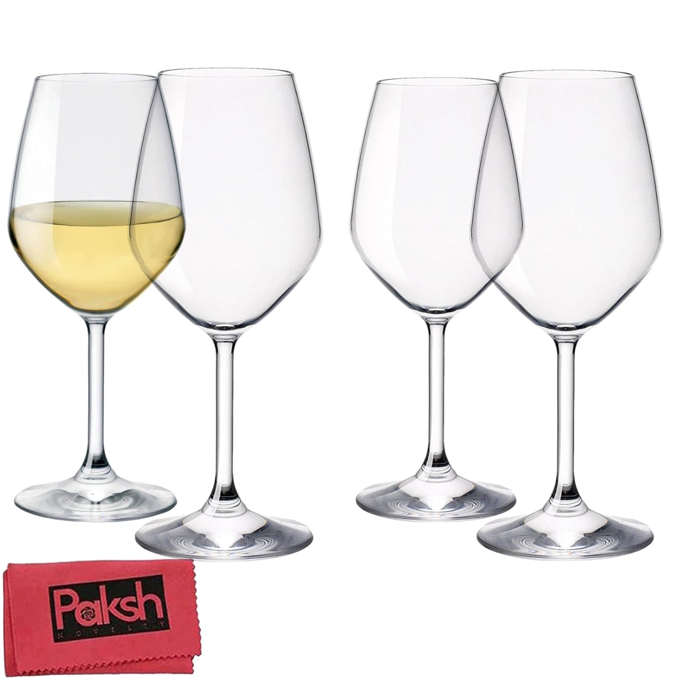 • The Drinking Bundle - Italian-Crafted Glass Restaurant White Wine Glasses Dishwasher Safe, 18-Ounce, Set of 4 - Bundled With Cloth is a