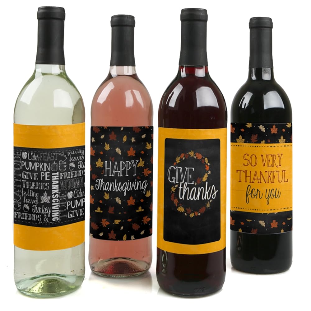 • The Give Thanks - Thanksgiving Wine Bottle Labels - Set of 4 is a
