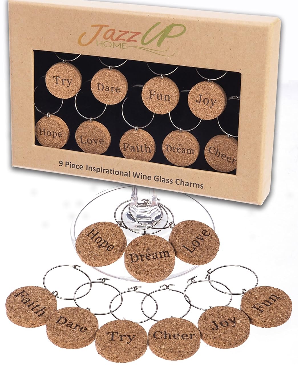 You buy Inspirational Wine Charms Gift Set | 9 Corked Cocktail or Wine Glass Markers w/ Motivational Wordswith Coupon : GOO30 will be discounted 30% price