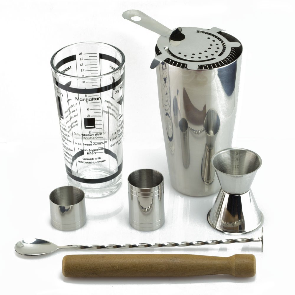 • The TeiKis Boston Cocktail Shaker Bartending Set Complete Bar Accessories Set is a
